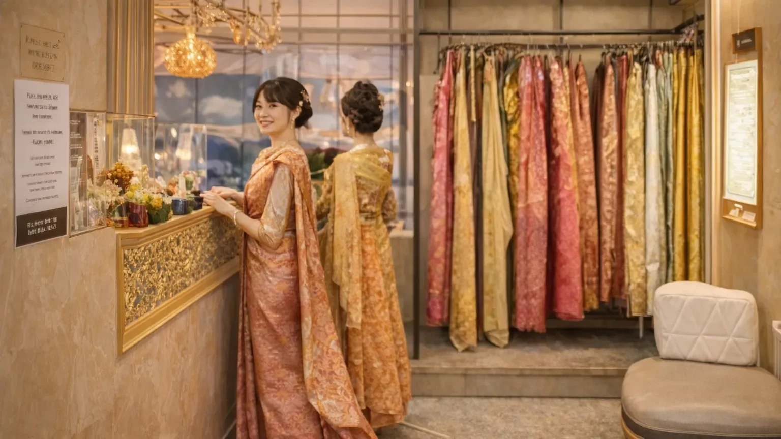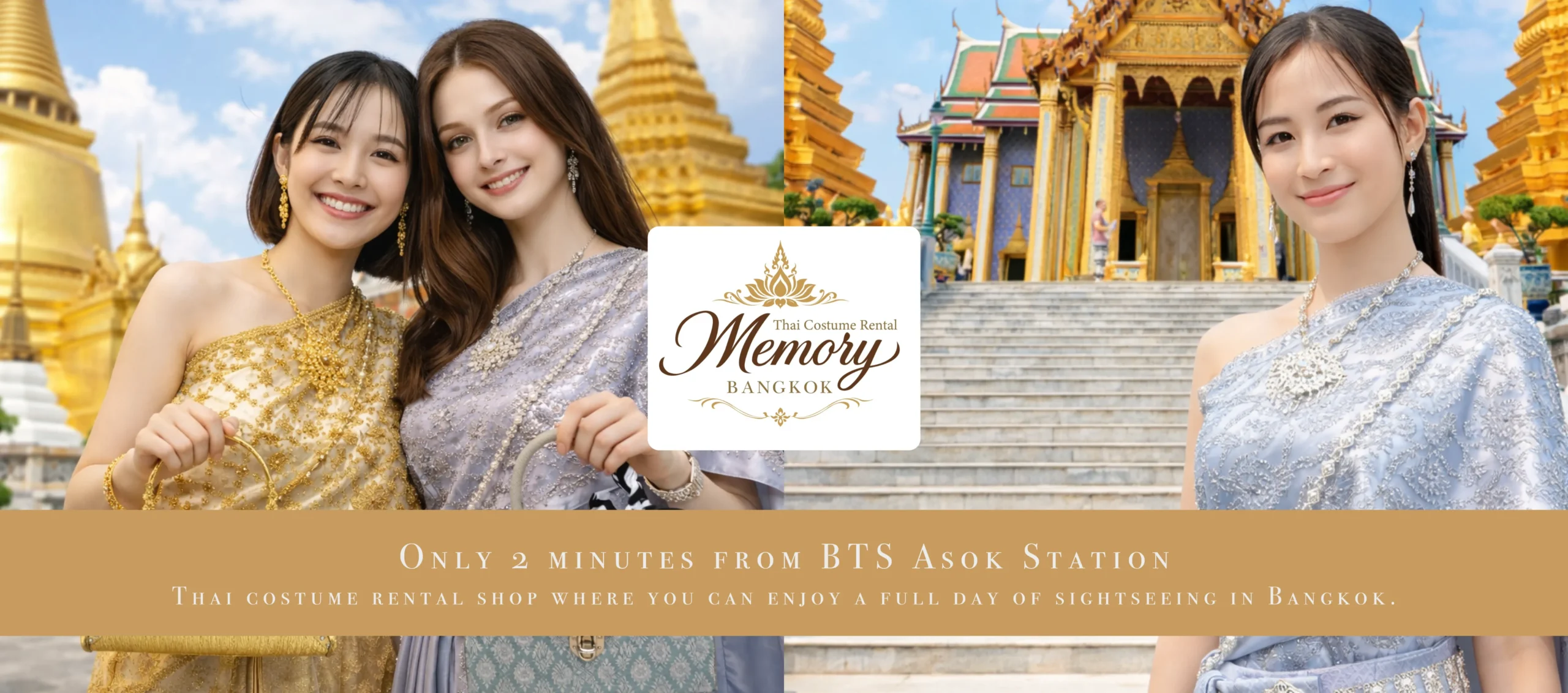 Experience authentic Thai costume rental in Bangkok. Located near BTS Asok station. Accessories included, shower available, luggage storage and Japanese staff. Perfect for Wat Arun photo spots.